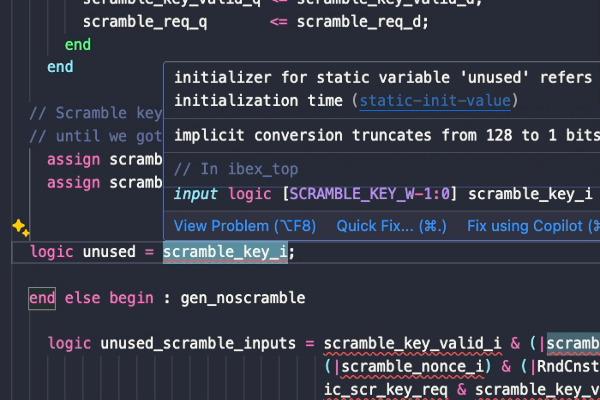 "The project we built and released is a language server, which is a tool that provides intelligent code navigation and instant feedback into popular editors like VS Code, Vim, and Emacs for a particular language. It’s a protocol based on the VSCode API, allowing the server to be written in any language, not just TypeScript. The server is based on the Slang project, which is a SystemVerilog frontend and linter. Slang was created by our own Mike Popoloski, and he’s continued to develop features and maintain that project. According to the ChipsAlliance test suite, Slang is the fastest and most compliant SystemVerilog frontend, which in hardware compilers is the engine that parses code, checks for errors, and builds the design hierarchy.